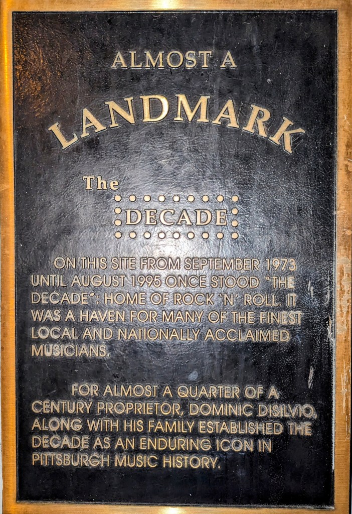 As I prepare things for an imminent move to Texas (occasional priestly rotations have always been a healthy pastoral praxis in the Church) I can’t help regretting some of the things I missed in my current home base, Pittsburgh. One of those missed opportunities was to get inside the former locally famous Decade Music Club. Although the Decade closed in 1995 and is currently closed, the number of impressive musicians that played there in its 23 year history (two decades) always called to me to get inside and vicariously be a part of that cultural history. Strange desire, I know, but we all have our weird habits (one of mine is to let my imagination go slightly wild inside abandoned buildings). By the way, among the artists who played the Decade were the Pretenders, the Romantics, Stevie Ray Vaughan, the Ramones, the Police, U2, Bruce Springsteen, and Wooden Nickel (friends of mine). Rumor has it that at some point, the sound man died, and his ashes were spread under the stage. Creepy for sure, and some bands refused to play there after that.